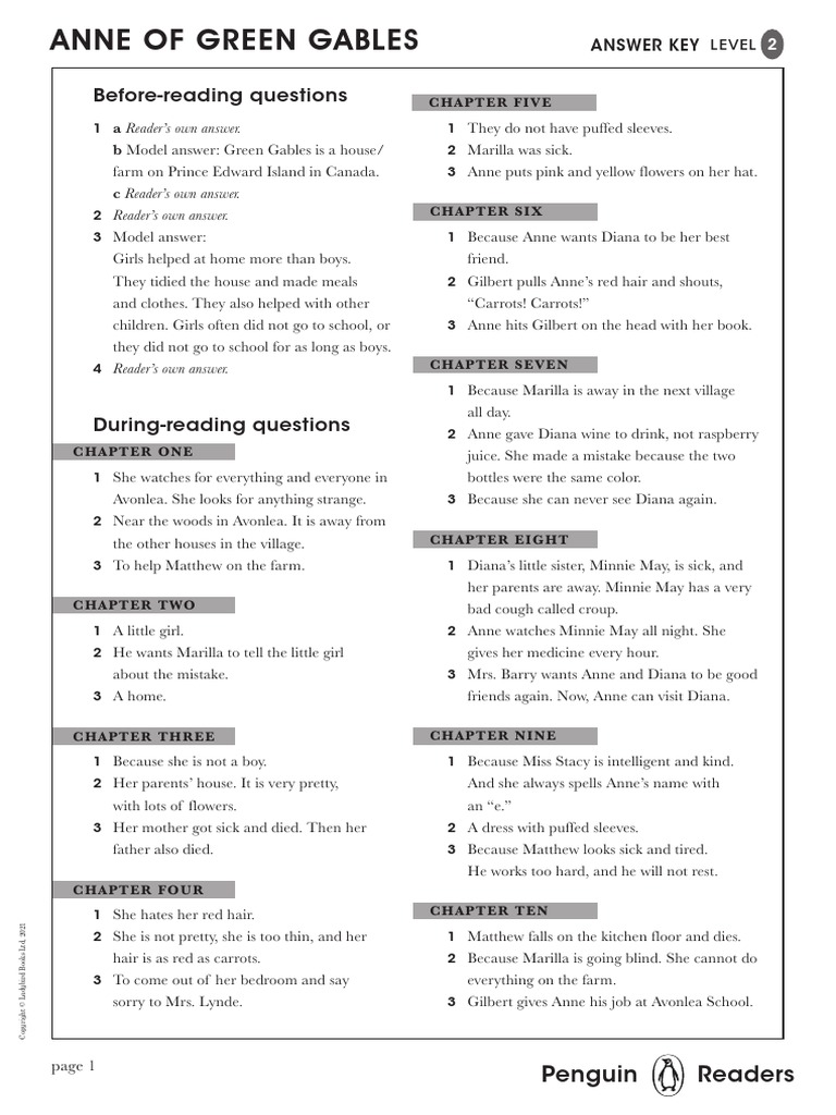 Answer Key Pdf Anne Of Green Gables